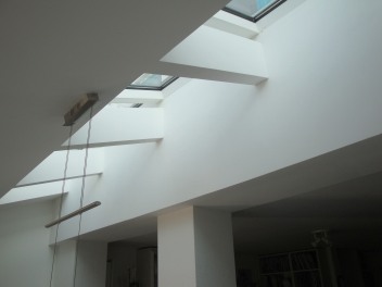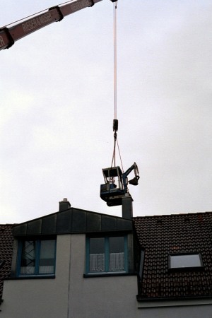 Planungsaufgabe: Verlegung des Essplatzes aus der Tiefe des Reihenhausgrundrisses ans Tageslicht. Organisation des Bauablaufs / Rohbau mit möglichst wenig "Baustellenverkehr" durch das Wohnzimmer.