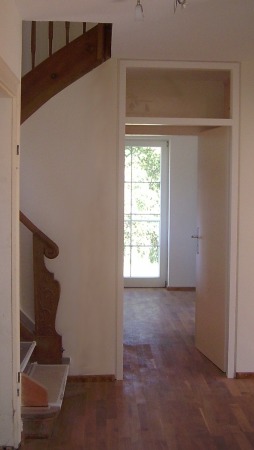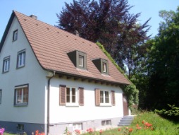 Bestand: Ein Einfamilienhaus Bj. 1938, gelegen in einer Obstwiese ohne direkte Zufahrt. Das Gebäude wurde im Lauf der Zeit mehrfach modernisiert. Für die Planung relevant waren die relativ neuen Holz/Alufenster sowie die neue Ölheizung.