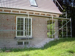 Planungsaufgaben: Neuordnung der Erschließ- ung, Bau einer Zufahrt mit Garage. Veränderung des vorhandenen kleinteiligen Grundrisses, Schaffung größerer zusammenhängender Räume.