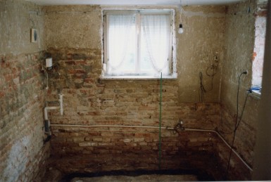 Wände, Decken, Böden, Erneuerung der Sanitär- und Heizungsinstallation.