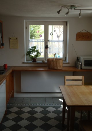 Das Gebäude ist Teil eines großen viergeteilten Walmdachhauses mit einem imposanten Dach- stuhl. Die vorhandenen Wohnräume hingegen wiesen teilweise nur Raumhöhen von ca. 2m auf. Durch die Freilegung der Deckenbalken und tiefer legen der Böden im EG konnten die Raumhöhen vergrößert werden.